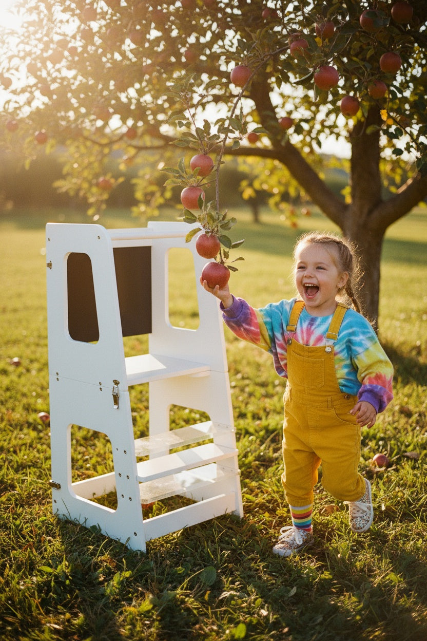 Descubre todas las actividades que tu hijo puede hacer con una torre aprendizaje Montessori: cocinar, pintar, jugar y aprender con autonomía y diversión.