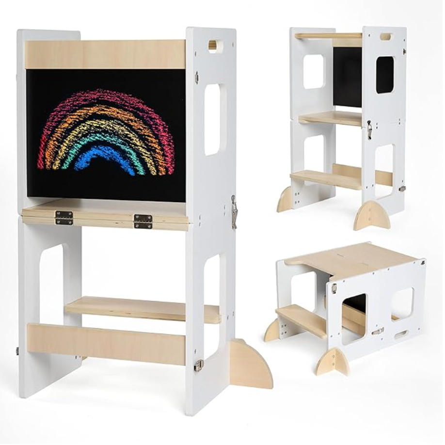 - 🔄 3 en 1 multifuncional: torre de aprendizaje, mesa y silla en un solo producto.