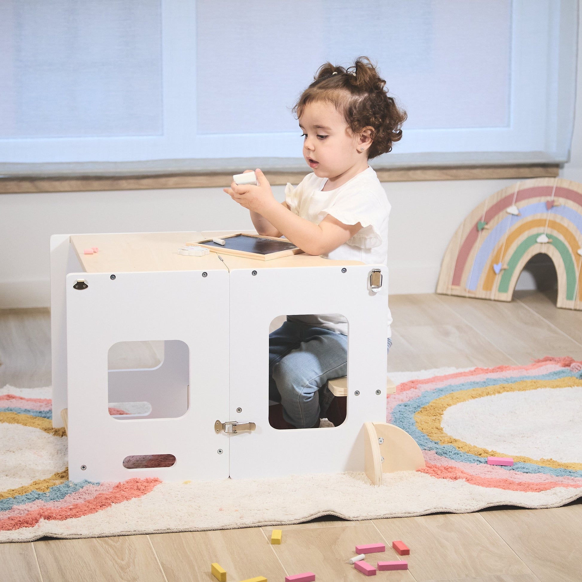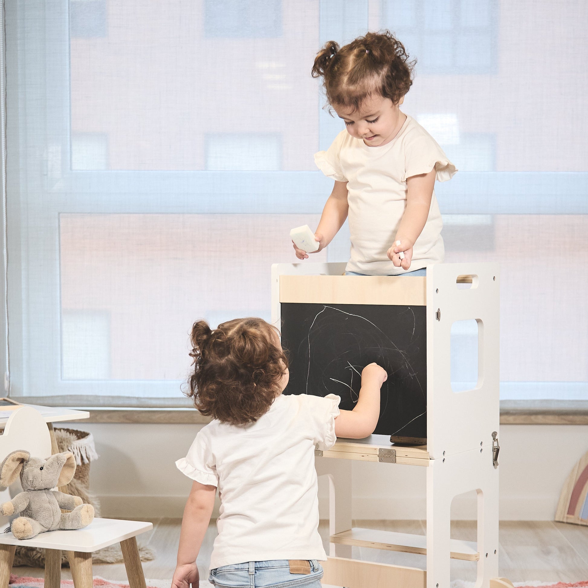 Torre de Aprendizaje Montessori 3 en 1 – Torre, Mesa y Silla con Pizarra Integrada